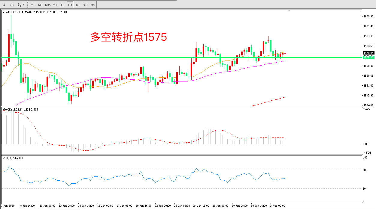 周一(2月3日),黄金市场先涨后跌,日内一度刷新近四周新高,但随着投资者选择获利了结,金价大幅回落,收至1578.32美元/盎司。但英国谈判一波三折,中国在春节假期结束后推迟复工,全球经济放缓顽疾难解,诸多不确定性依然支撑这市场上的避险情绪,中期走势依然看多。