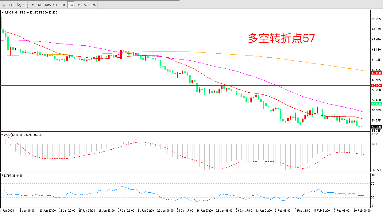 交易策略:在57.00之下看跌,目标55.00    52.00