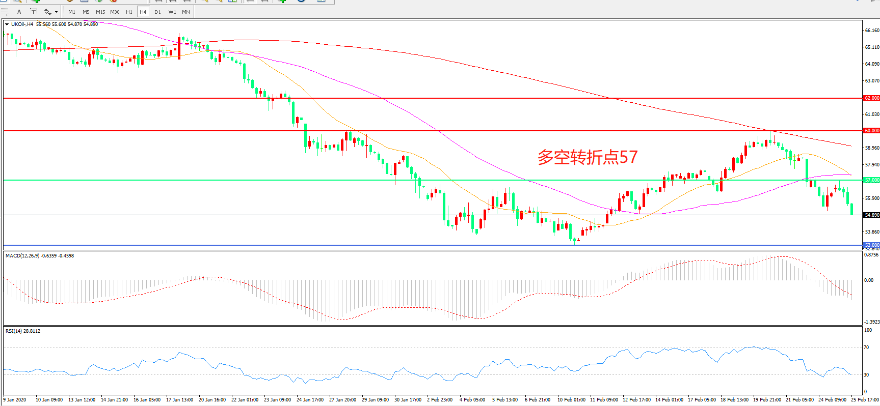 多空转折点:57.00