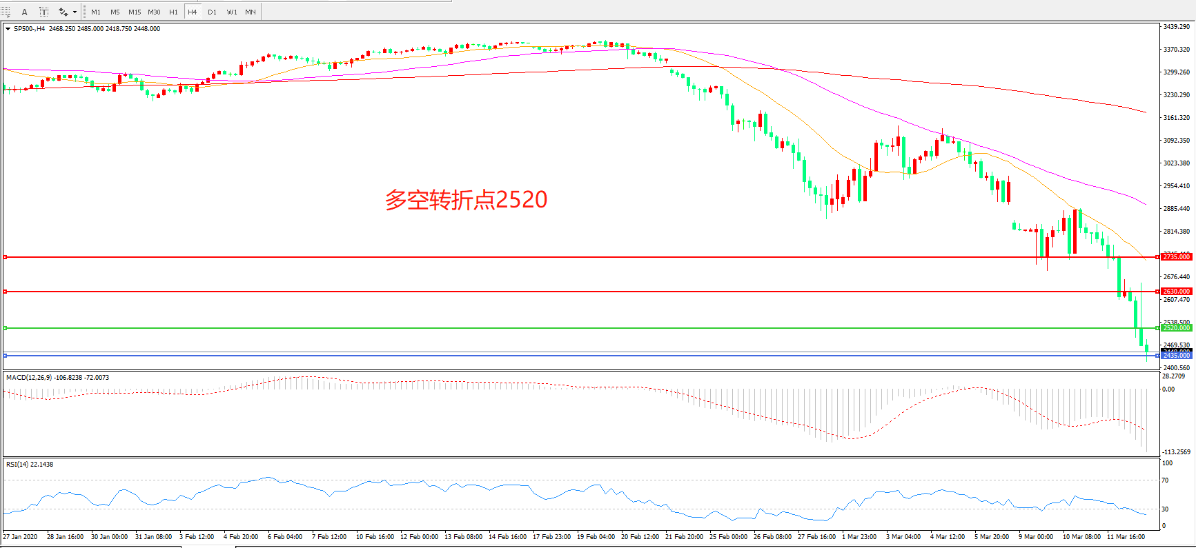随着全球疫情加剧,全球市场恐慌情绪不断蔓延,美股开盘后,VIX恐慌指数飙升超21%创一个月新高,全球股市以及大宗商品市场齐陷抛售浪潮,标普500继续走低,收报2450点。在本周经历了1987年推出熔断机制以来的第二次熔断之后,美国三大股指在3月12日开盘后集体跌破7%,再次触发熔断,为史上第三次。