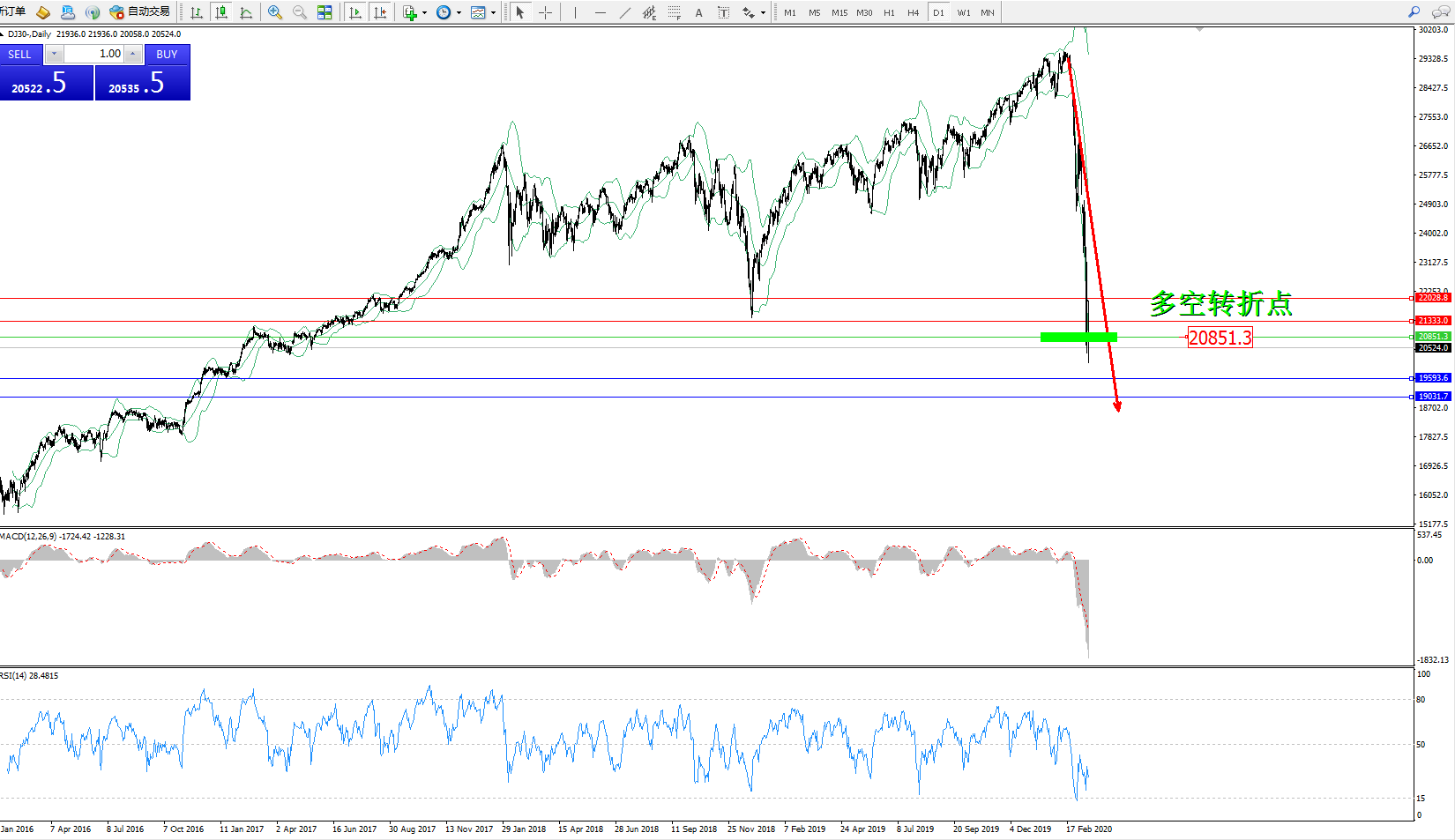 道琼斯指数316日(周一)收盘下跌2999.00点,跌幅12.93%,报20186.65点。美股今日暴跌,道指开跌约2200点,触发熔断,全市场开盘后立即暂停交易15分钟,恢复交易后道指跌幅有所收窄,但尾盘继续下行,险守二万点关口,除黄金、白银板块外几乎全线板块走低,航空股、科技股大幅疲软。虽然美联储降息至近零水平并部署大规模购债,但未能缓解投资者对疫情冲击经济的担忧;全球股市暴跌,美股创下1987年以来最大跌幅。虽然美联储降息至近零水平并部署大规模购债,但投资者继续大声疾呼,要求庞大的支出计划,来抵御学校、餐馆、影院和体育赛事关闭给经济带来的冲击。像这样大规模的刺激政策会支撑风险资产并支持经济复苏,但是疫情对经济的冲击正在成倍上升,市场理所当然地质疑货币政策还能做什么,并削弱了刺激政策缓解下行风险的有效性。
