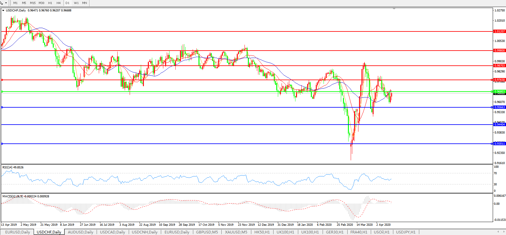 交易策略:0.9680下方看跌,目标0.9565、0.9440