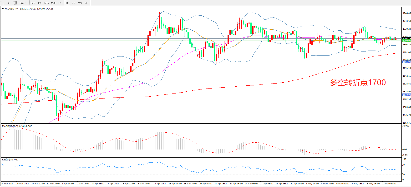 周二(5月12日),有“美国钟南山”之称的权威医学专家福奇指出太快复工存在让经济复苏倒退的风险,避险情绪卷土重来,金价小幅反弹,收报1703.19美元/盎司。到目前为止,新冠疫情在全球的蔓延,已经导致近418万人感染,逾28万人死亡,中国、德国和韩国这些国家已放宽封锁限制,但传出新增病毒感染病例,新型冠状病毒卷土重来可能会削弱全球经济复苏,黄金依然是避险的最佳选择。
