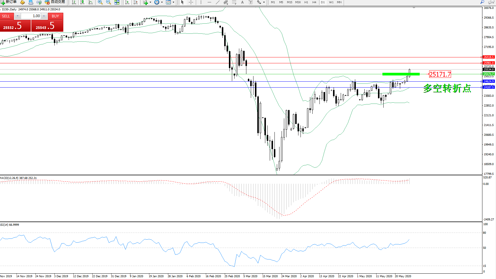 道琼斯指数DJ30—— 日K线图显示: