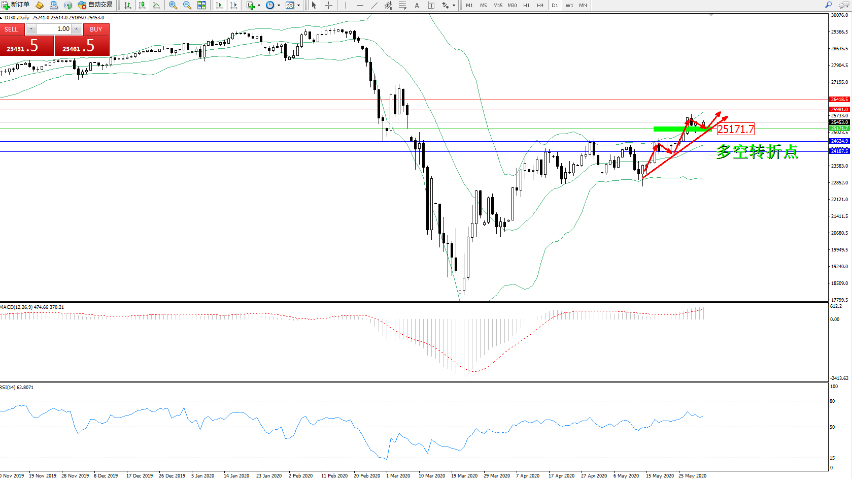 道琼斯指数61日(周一)收盘上涨91.90点,涨幅0.36%,报25475.02点。美国股市收高,科技股为主的纳斯达克综合指数跑赢大盘,虽然美国各地爆发骚乱,但投资者更专注经济复苏的迹象。经济迈向复苏的进展可能有助于抵消地缘政治、疫情和社会动荡所带来的短期挑战对股市造成的压力。整个市场在6月都可能面临很多意外。这将是一段波动很大的时段,美国开始复工,再加上地缘政治风险等。备受关注的美国制造业指数在5月份出现四个月来首次上升,表明因新冠疫情而急剧降温的制造业活动开始在低迷水平上企稳。5月制造业采购经理指数(PMI)4月触及的11年低点41.5升至43.1。该指数低于50代表活动减少。生产和工厂就业指数均从数十年低点小幅上升,订单指数继前一个月创下1951年以来最大单月跌幅后回升。