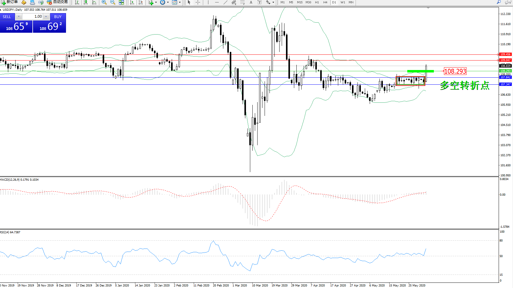 美元兑日元日内涨超百点,涨幅近1%,创4月9日以来新高至108.65,受益于市场乐观情绪、日本央行宽松预期和空头止损盘;近期全球股市攀升,市场乐观认为,由疫情引发的经济衰退最严重时期可能已经过去,带动风险情绪改善。虽然日本的经济活动出现了10多年来的最大降幅。不过金融市场仍乐观认为全球经济仍在复苏,这种乐观情绪施压避险日元,支持美元兑日元;6月2日日本央行发布的数据显示,截至5月底,日本基础货币量达到5万亿美元,连续第二个月创下历史新高,因该行正注入更多现金,来缓冲疫情对企业和消费者的打击。日本央行有大量的贷款计划,旨在刺激商业银行增加对现金短缺企业的贷款,预计将继续扩大其资产负债表,以缓解公共卫生危机的影响。