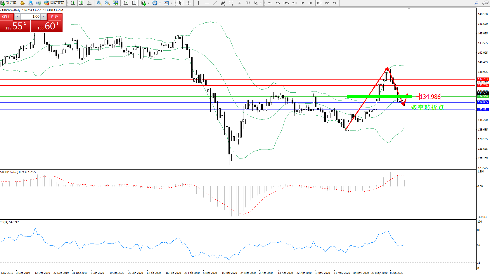 技术点评:高位空头动力急速震荡下挫至布林带指标中轨附近维持震荡走势中,下行动力有明显减弱迹象,多头开始伺机短期反扑,布林带指标呈收口走势,MACD指标处于0轴线上方多头区域持续平缓整理下移中,RSI指标处于多头区域急速震荡回撤至50均衡线附近弱势整理中;