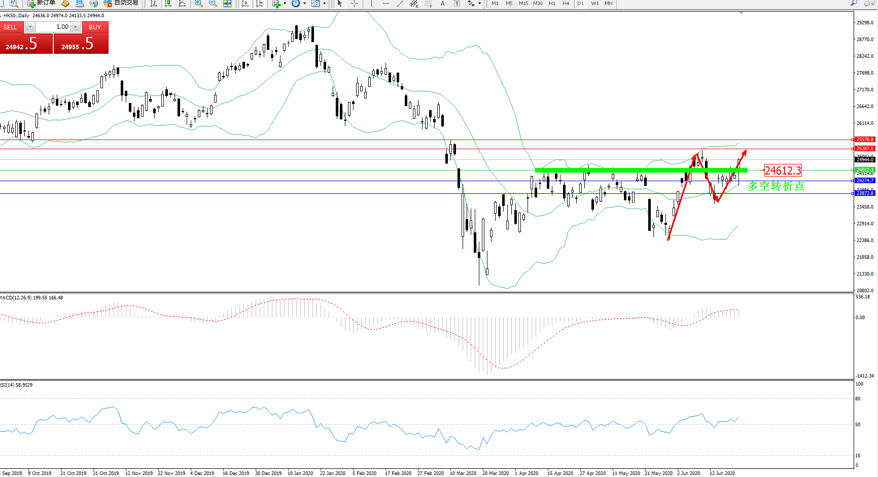 香港恒生指数623日(周二)收盘上涨396.00点,涨幅1.62%,报24907.34点;港股三大指数均收涨超1%,,国指涨1.16%9993点。重磅蓝筹股表现活跃,腾讯大涨近5%创历史新高,为恒指贡献143点,其次是友邦保险涨2.46%贡献57点,港交所涨2.7%再创新高。恒指成份股半数以上涨超1%,市场做多氛围强烈,但大市成交并未有效放大,成交额不足1200亿港元。半导体、系统软件强势领涨,复星国际与阿里巴巴等公司洽谈出售菜鸟价值130亿美元的股权。复星国际寻求以近200亿美元估值部分或全部出售菜鸟6.7%的股份。端午节假期即将来临,623(星期二)627(星期六)不提供港股通服务,628(星期日)为周末休市,629(星期一)起恢复开放。