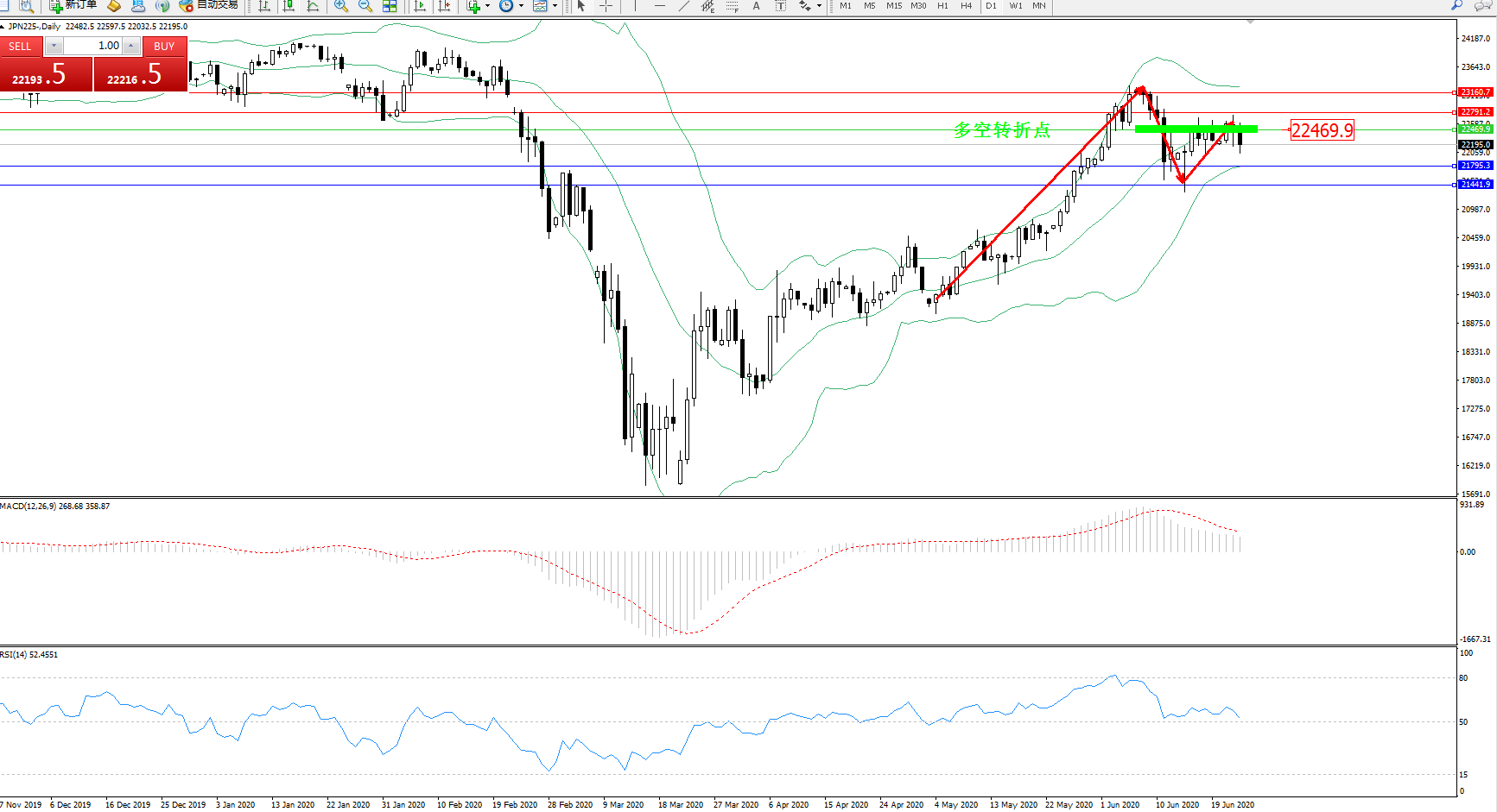 日经225指数6月24日(周三)收盘下跌33.05点,跌幅0.15%,报22516.00点。日本央行表示:日本经济受到新冠病毒影响的压力,但显示出了一些触底迹象。一位委员认为确保企业融资市场的稳定至关重要。当前的政策框架是灵活的,可应对经济发展情况的复杂变化。日本央行的政策正在产生预期的影响。疫情对全球经济增长的负面影响是长期的,日本的经济也难以避免这种影响。日本央行或多或少引入了必要的抗疫工具。经济复苏的延迟可能会破坏市场稳定,并可能损害金融体系。很难预测通货膨胀是否能在可预见的未来接近日本央行2%的目标。一位委员认为,需要密切留意政策的影响。如有必要采取额外政策措施,则必须快速反应。随着大范围经济领域受到冲击,必须防范日本重返通缩的风险。央行已提出应对疫情的充分计划,需要仔细评估政策影响。日本央行必须在当前政策框架下大胆使用所有可用工具,以保护企业、就业和稳定市场。