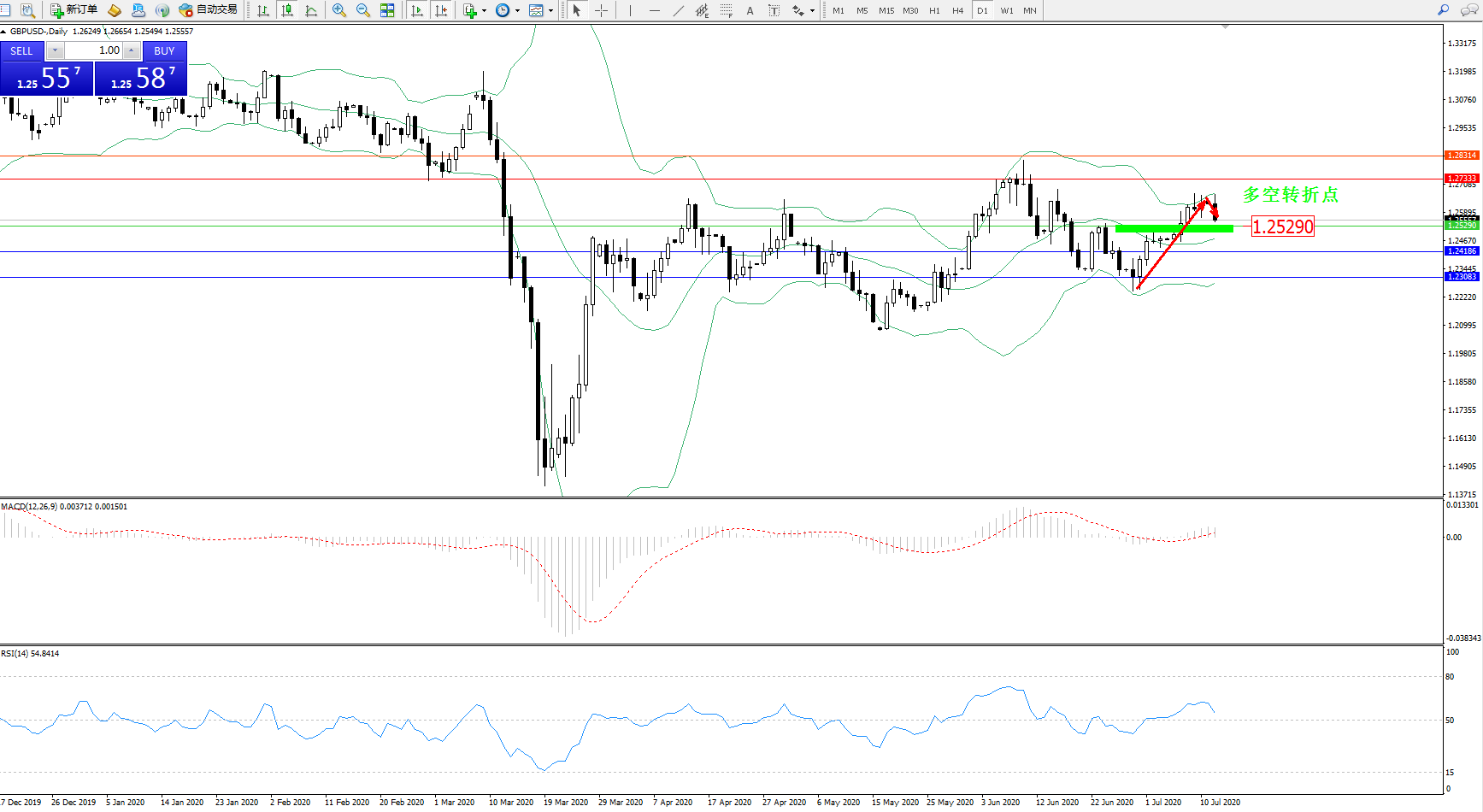 交易策略:1.25290上方看涨,目标1.27333、1.28314