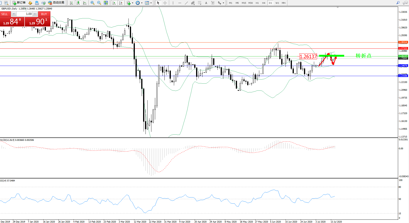 备选策略:1.26137上方看涨,目标1.27333、1.28314
