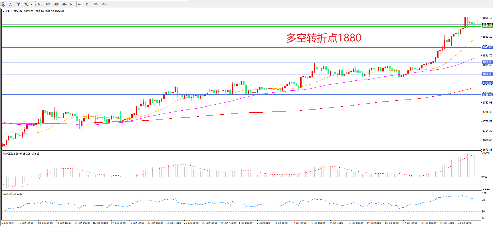 交易策略:在1880.00之上看涨,目标1920.00 1950.00