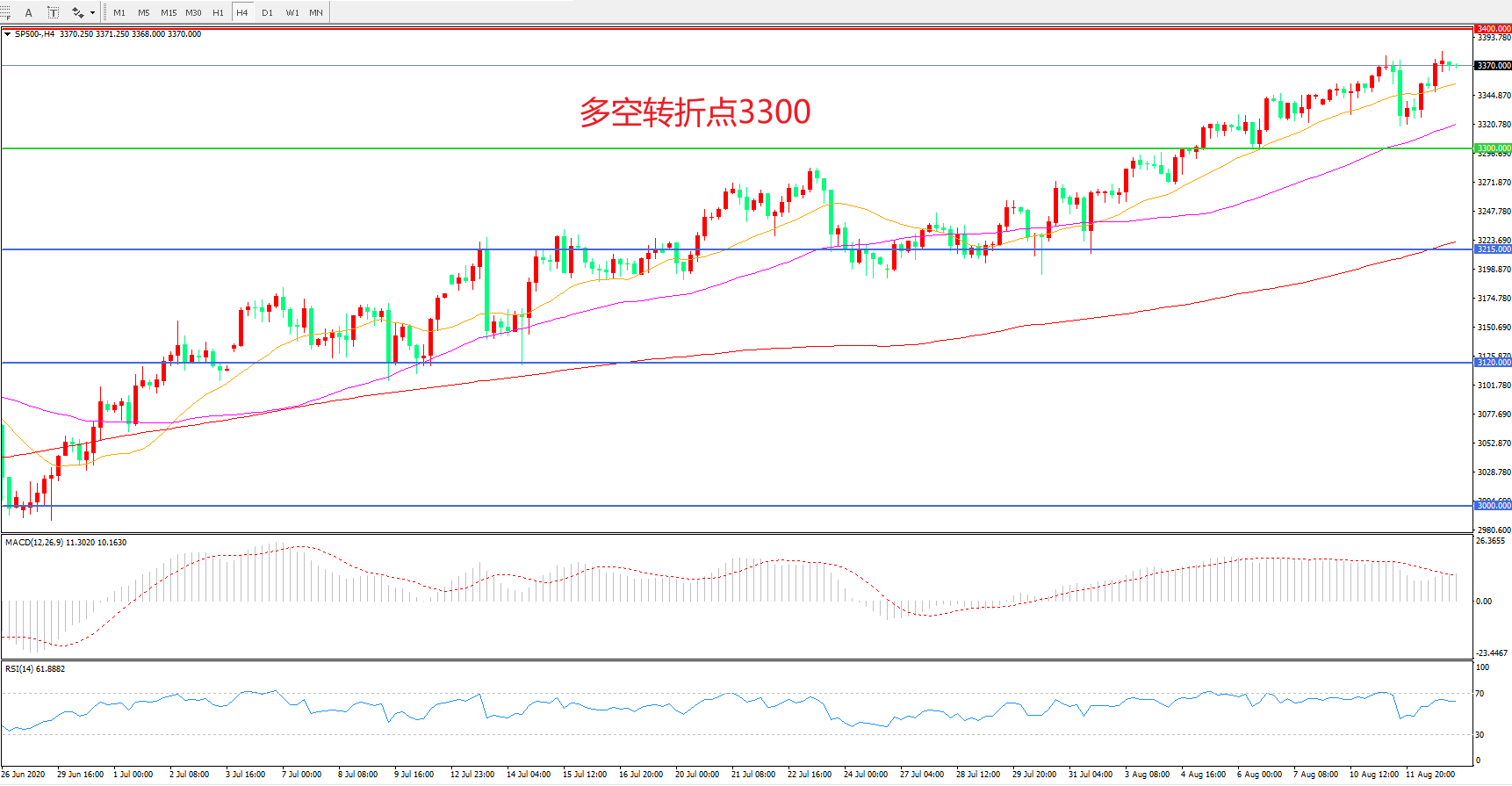 多空转折点:3300.00
