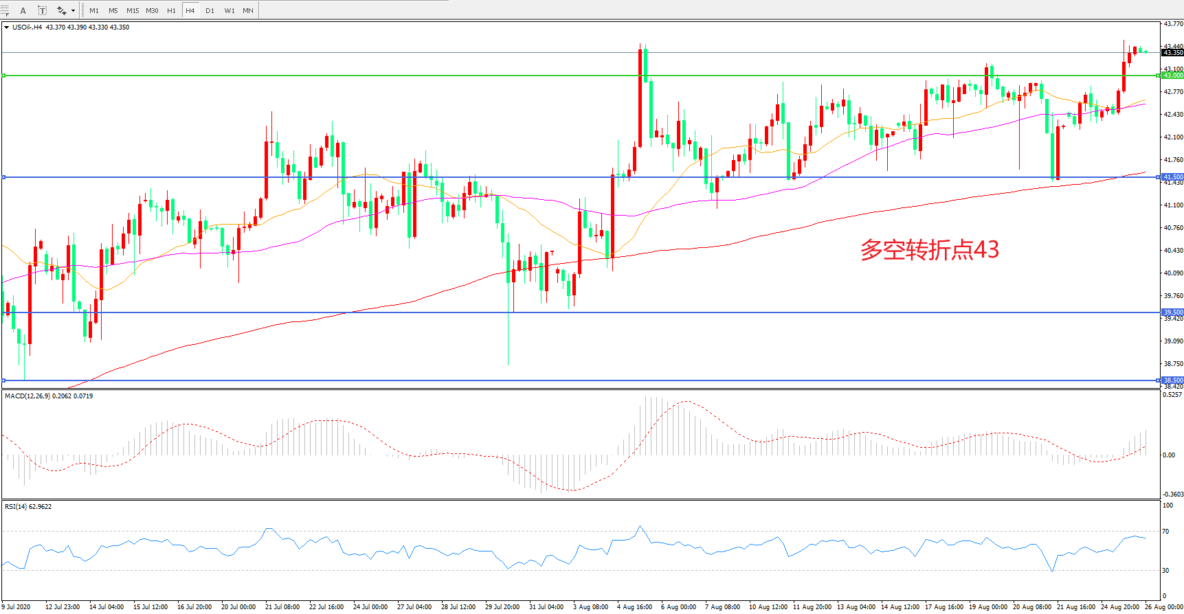 交易策略:在43.50之上看涨,目标46.00         49.50