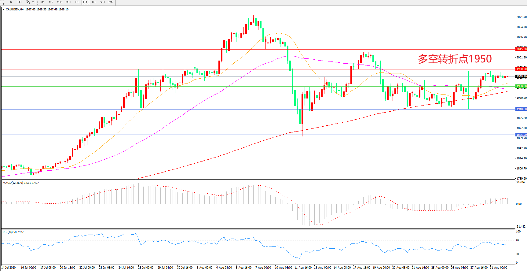 备选策略: 在1950.00之下看跌,目标1910.00 1865.00