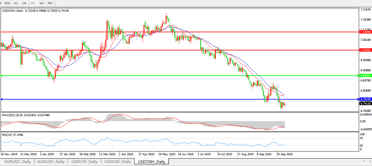 美元兑人民币USDCNH    日线图:
