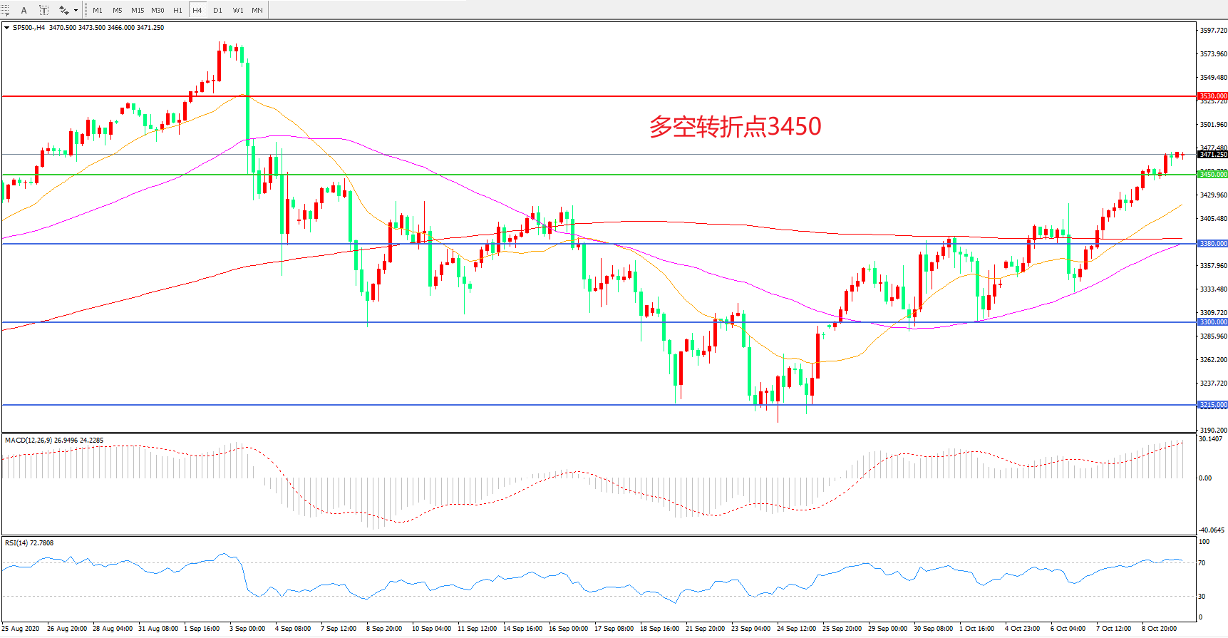 交易策略:在3450.00之上看涨,目标3530.00 3620.00