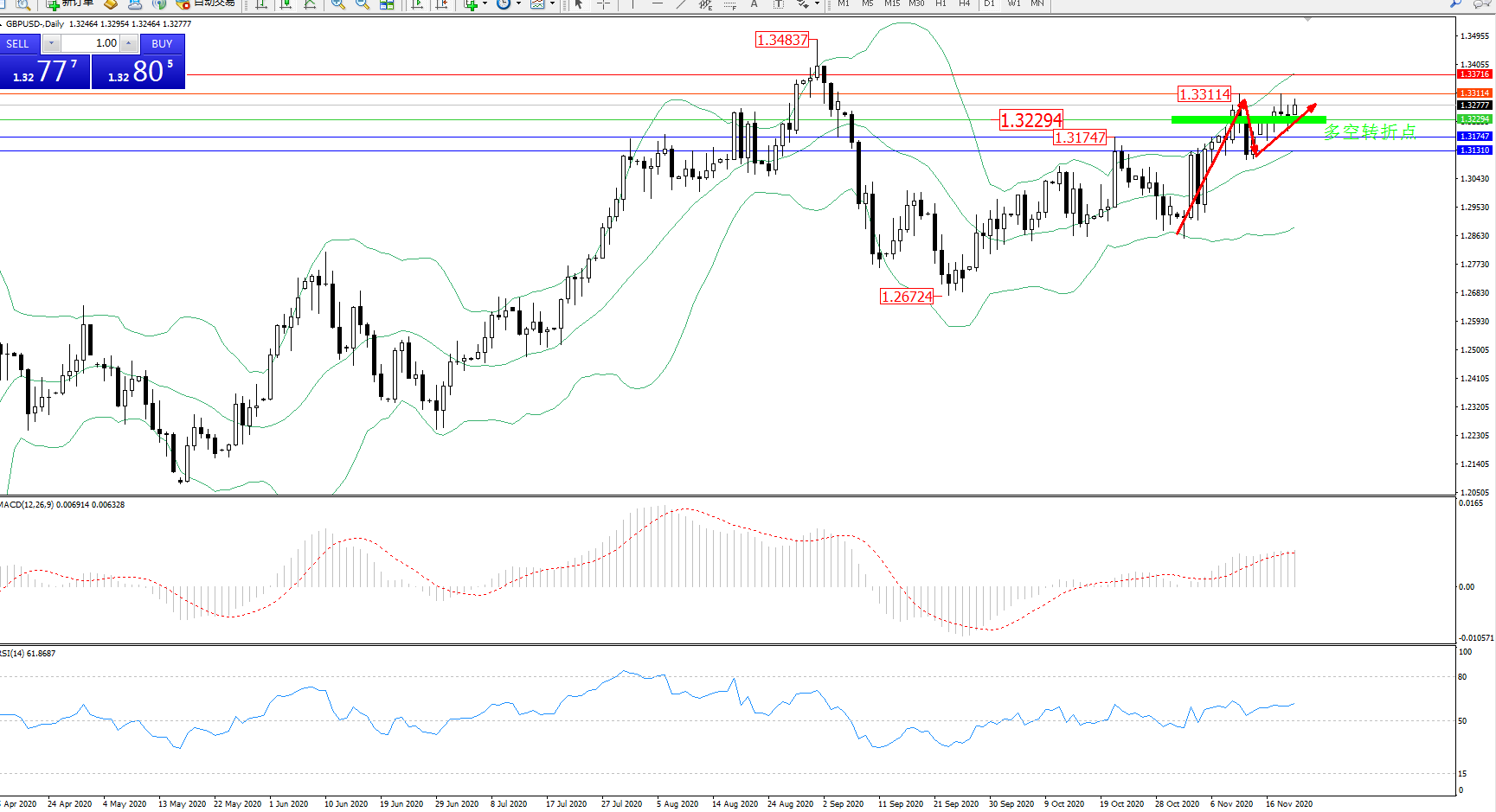 交易策略:1.32294上方看涨,目标1.33114、1.33716