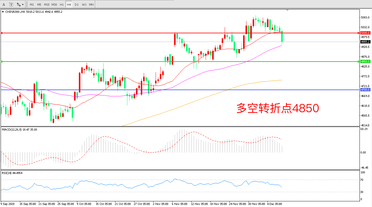 交易策略:在4850.00之上看涨,目标5000.00       5150.00