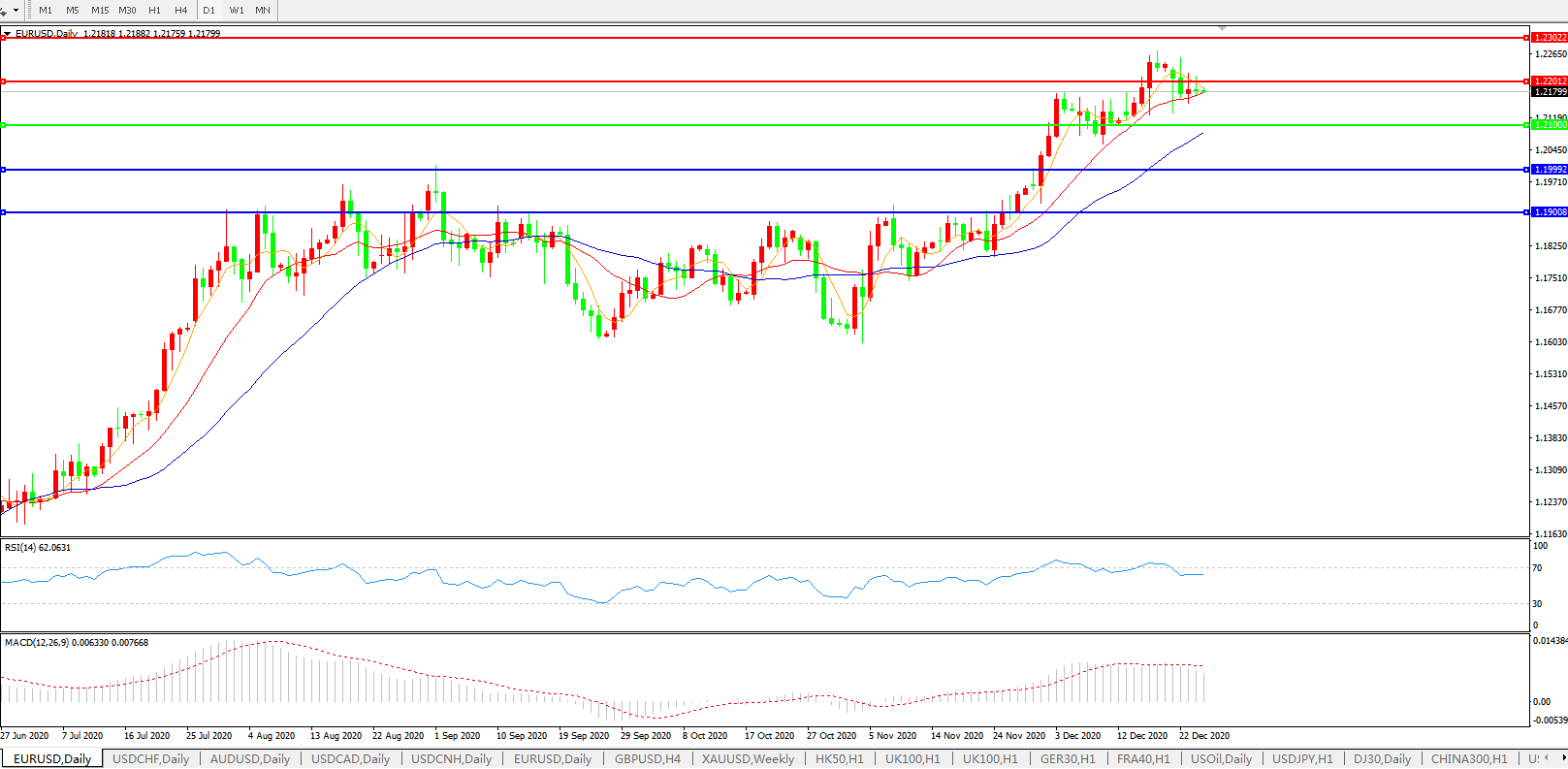 交易策略:1.2100上方看涨,目标1.2200、1.2300