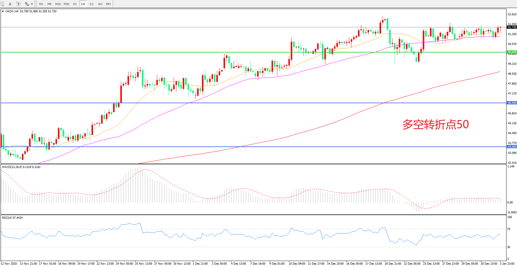 交易策略: 在50.00之上看涨,目标53.00 57.00