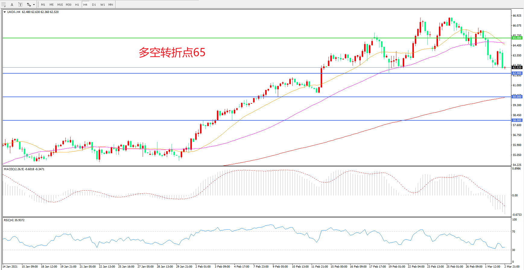 多空转折点:65.00