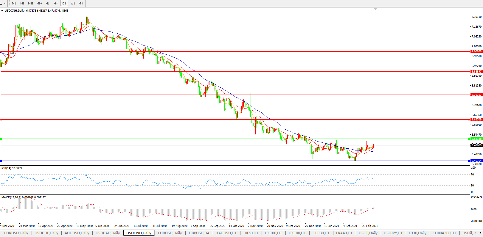人民币兑美元即期周四收盘小跌70点,日内维持窄幅区间波动,中间价则跌近200点至逾一个月低点,关注晚间美联储主席鲍威尔讲话;鲍威尔的讲话将受到市场的密切关注,以判断是否有迹象表明美联储对近期收益率上升感到不安,另外美国参议院把讨论总统拜登1.9万亿美元抗疫救助议案的时间推迟至最早周四;美联储周三公布的报告显示,美国经济在今年前几周继续以温和的步伐复苏,企业对未来几个月持乐观态度,住房需求“强劲”,但就业市场仅缓慢改善;芝加哥联储主席埃文斯周三表示,他认为近期公债收益率快速上升主要反映了经济改善; 欧洲央行政策制定者已在下周的会议前划定了战线。在下周的会议上,他们将决定是否加快紧急债券购买步伐,以安抚紧张不安的金融市场;全球汇市方面,美元兑日元周四触及七个月高位,因美债收益率有序上扬提供支撑,稍后美联储主席鲍威尔将发表演说,可能决定全球债市和汇市的趋势。