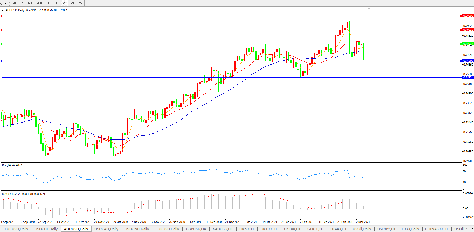 交易策略:0.7800下方看跌,目标0.7680、0.7560