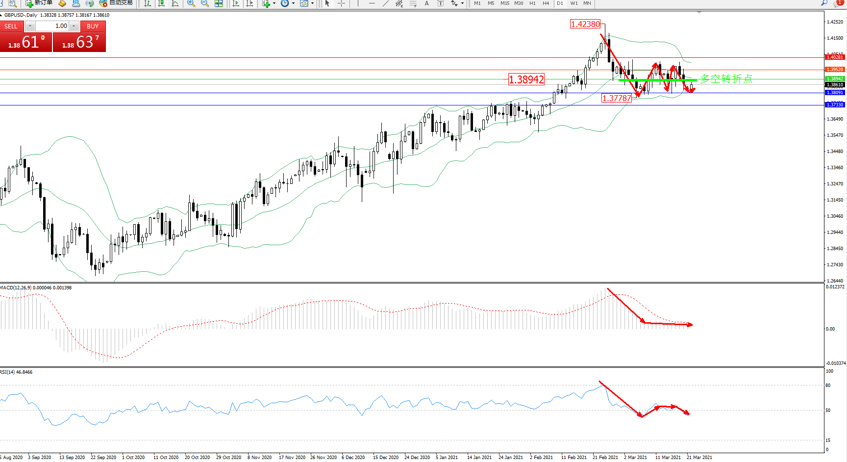 交易策略:1.38943下方看跌,目标1.38091、1.37330