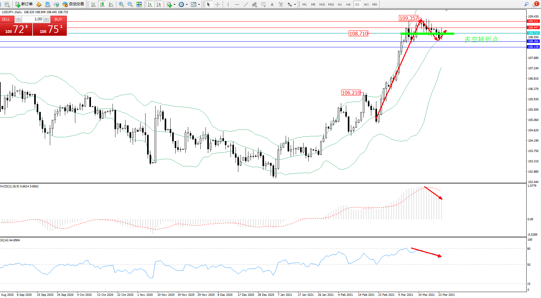 多空转折点:108.710