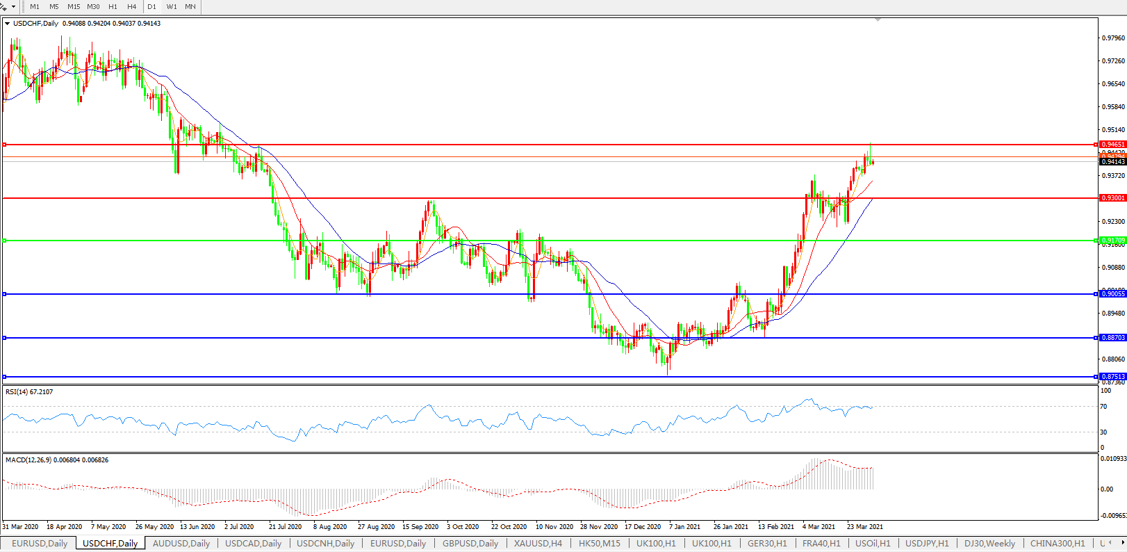 美元兑瑞郎USDCHF    日线图:
