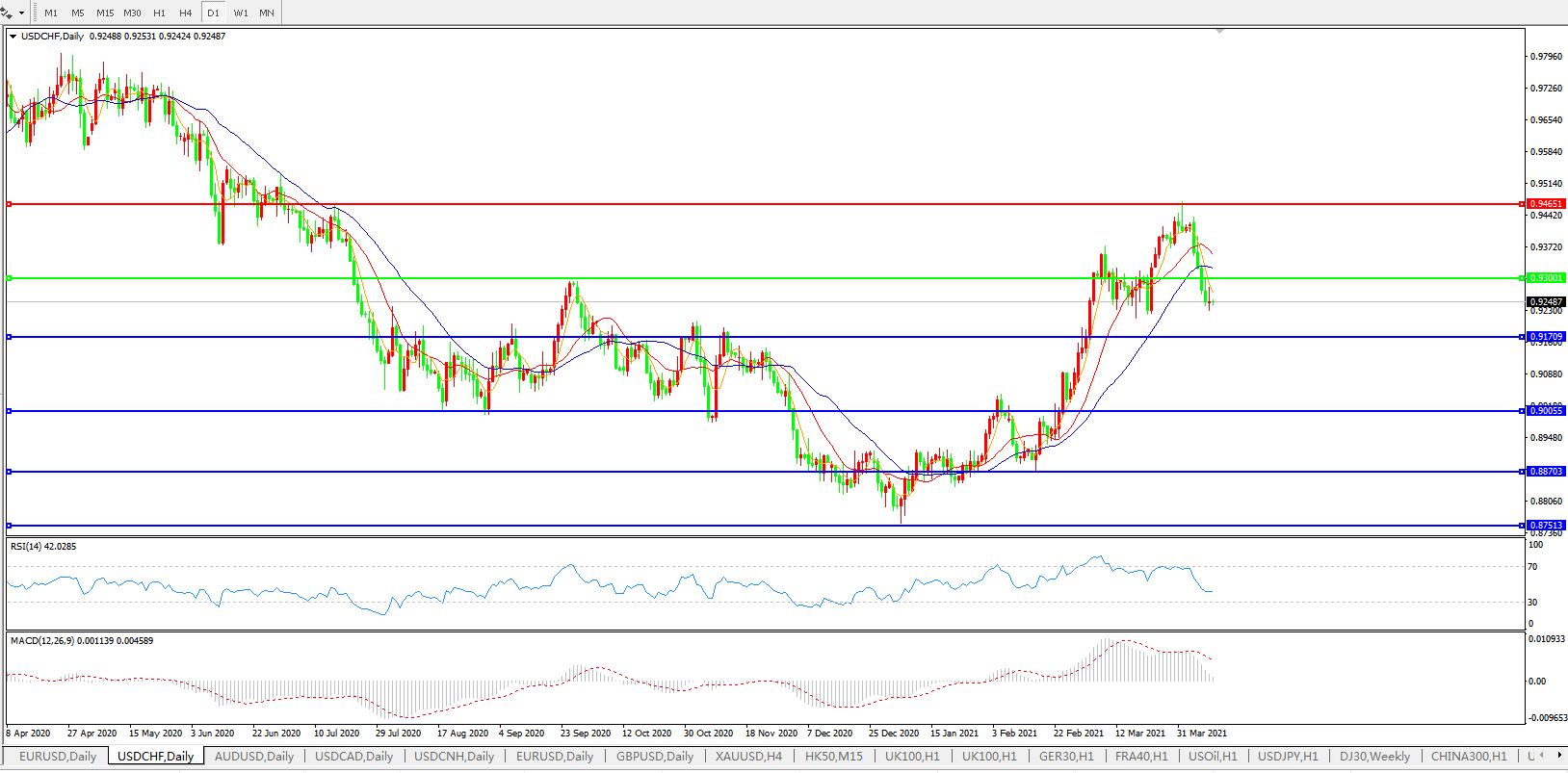 美元兑瑞郎USDCHF 日线图: