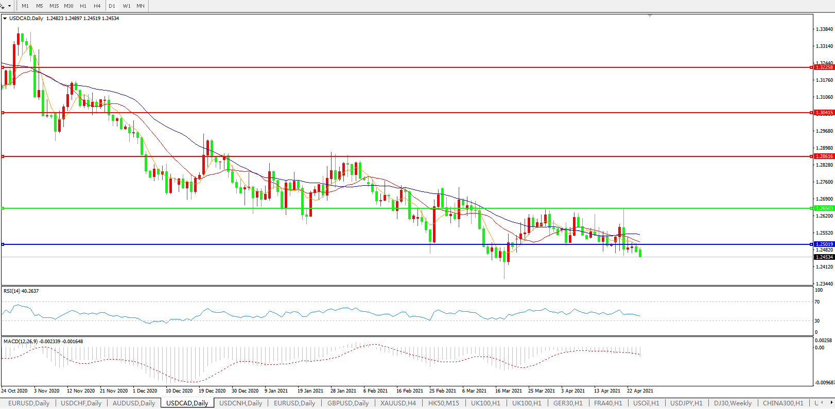 美元兑加元在周五亚市早盘维持了弱势走势,进一步下行触及日低1.2484,上方1.25关口在周三加拿大央行决议后已经转为反弹强阻力水平;原因在于,隔夜以来国际原油价格再度走强,带动加元汇价一并走强,同时美国总统拜登打算加征资本利得税之举,也令美国市场此后可能面临进一步资本外流潮的前景进一步打压美元走软,这都进一步强化了加元的走势; 后市美元兑汇价一旦进一步下破1.2460,将重新打开跌向3月份录得的两年低位水平之通道。而反之,如果美元回胜且油价重趋疲软,那么汇价至少要在升破1.2535跌触情况下才能确认后市有进一步反弹空间。