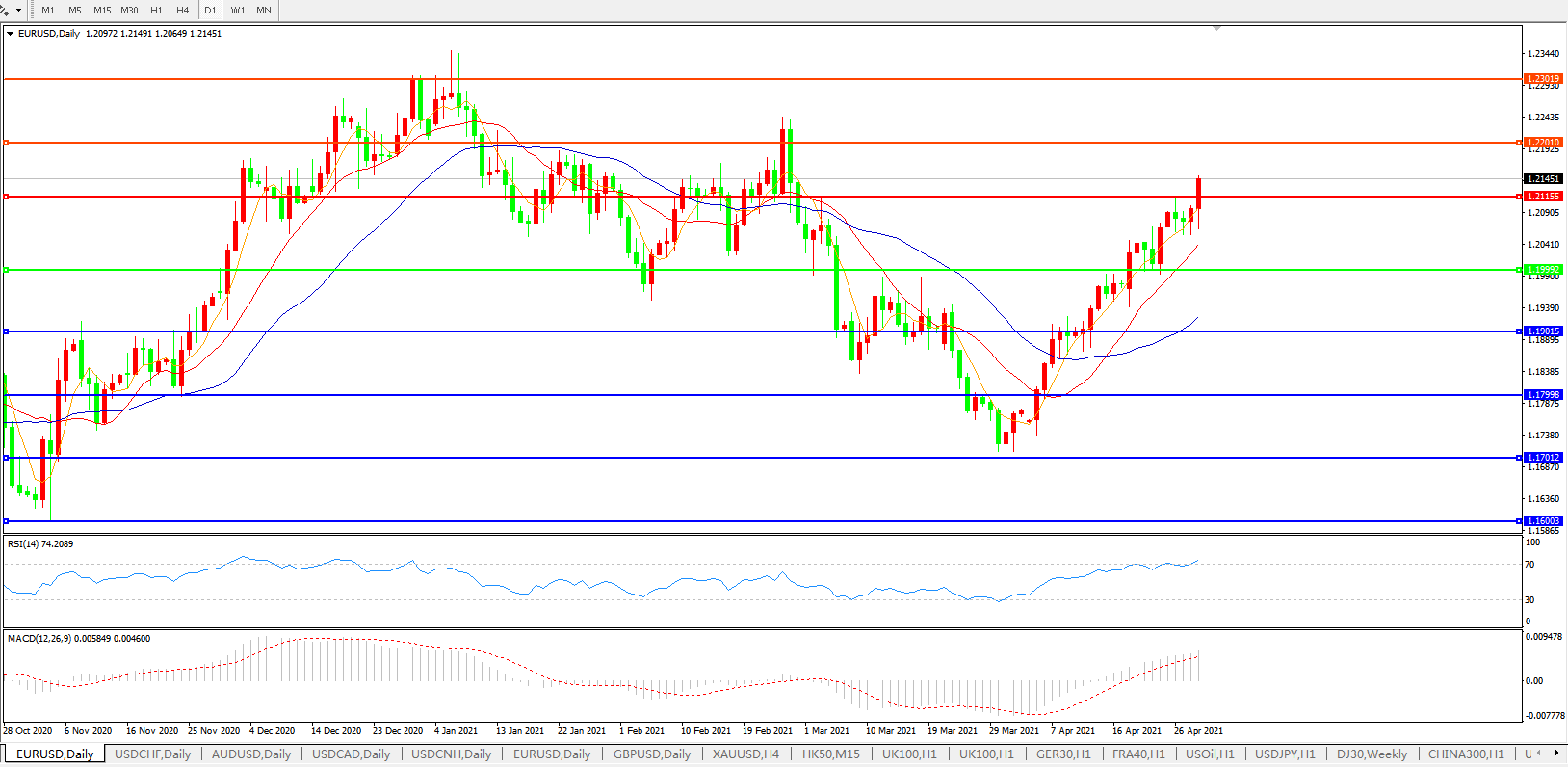 技术面简析:日图均线呈多头排列,汇价持续发力上行,MACD上穿0轴且量能有持续放量迹象,RSI攻入超买区域,预计短期汇价大概率将在整理后进一步上行。