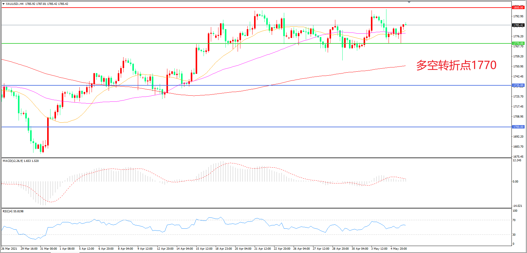 交易策略:在1770.00之上看涨,目标1800.00    1840.00