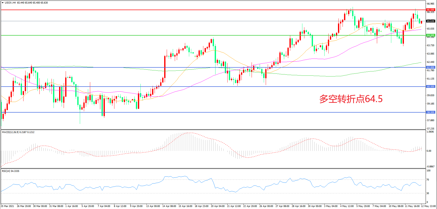 此外美国最大的燃料管道目前已因黑客攻击而持续关闭至第五天,从佛罗里达州到弗吉尼亚州的加油站开始告急,并引发了驾驶者的恐慌购买,对于其他地方出现的反应跟风现象,石油市场保持了观望态度。目前原油价格明显走出了一个窄幅区间震荡的趋势,64.5美元至66.5美元可能会成为下一阶段油价运行的主要区间。
