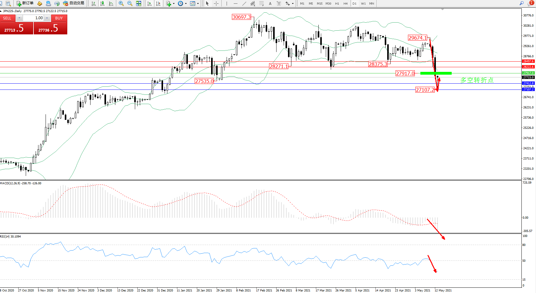 日经225指数5月13日(周四)收盘下跌706.01点,跌幅2.51%,报27441.50点。日本央行行长黑田东彦:关注美国经济和通货膨胀的发展。美国通胀急剧上升,部分原因是去年油价大幅下跌的基数效应。日本疫情发展及其对日本经济和物价的影响极不确定如果一些挑战可以攻克,稳定币将成为广泛使用的支付和结算手段。稳定币还存在需要解决的问题。 薪资增长对于可持续通货膨胀非常重要。日本央行的大规模刺激刺激了增长,使产出缺口变为正值,但这并没有立刻让工资和物价回升到适当水平。推高通胀需要时间,但这并不意味着货币政策无效。货币政策支持通胀是可能的,但考虑到日本通胀预期的适应性,这需要时间。当市场波动很大时,大量购买ETF才是有效的。ETF每日的购买取决于市场的发展,这是基于日本央行政策会议制定的指导方针。拒绝就ETF购买操作细节置评。日本央行大举购买ETF有效缓解了市场的不稳定。日本央行购买ETF并不打算将股价推高到一定水平。日本央行将灵活购买ETF。ETE的购买并不针对任何特定水平。日本央行并没有自动设定购买ETF的规则。ETE的购买是通过评估市场发展来进行的。