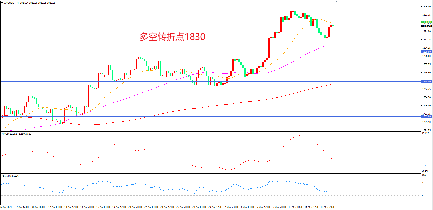 多空转折点:1830.00