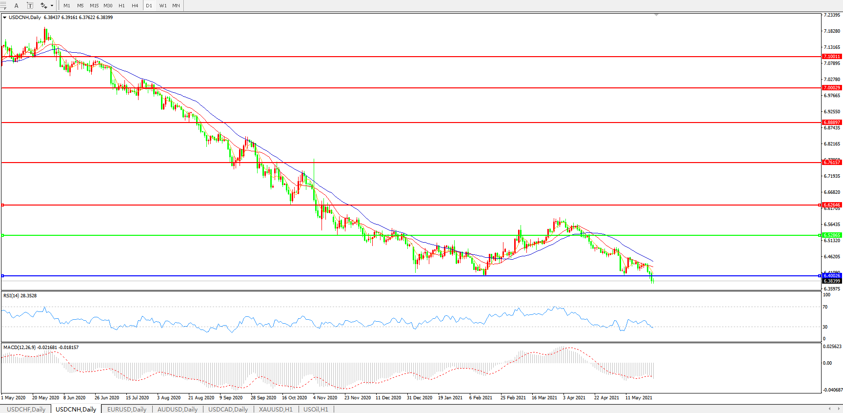 美元兑人民币USDCNH    日线图:
