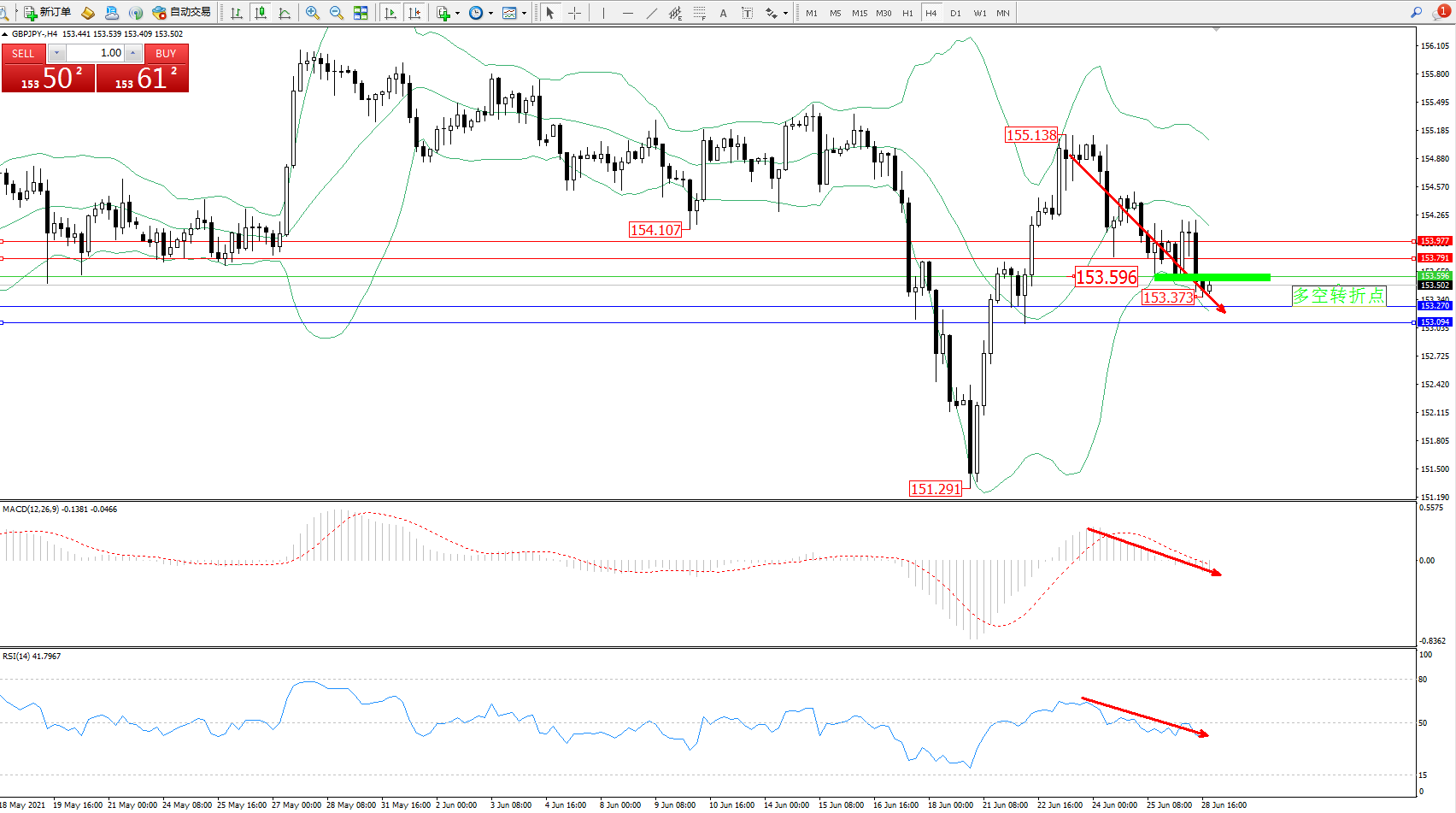 英镑兑日圆维持153.477附近震荡,英国首相约翰逊:看来可以在7月19日解除对新冠疫情的限制。英国卫生大臣贾维德将向议会提出解除限制的步骤。尽管新冠肺炎确诊病例增加,但住院病例和死亡病例都维持在低位。英国央行没有任何鹰派倾向似乎令市场感到失望,再加上欧盟与英国在北爱尔兰协议上的僵局和对英国Delta变种病毒感染病例激增的担忧。