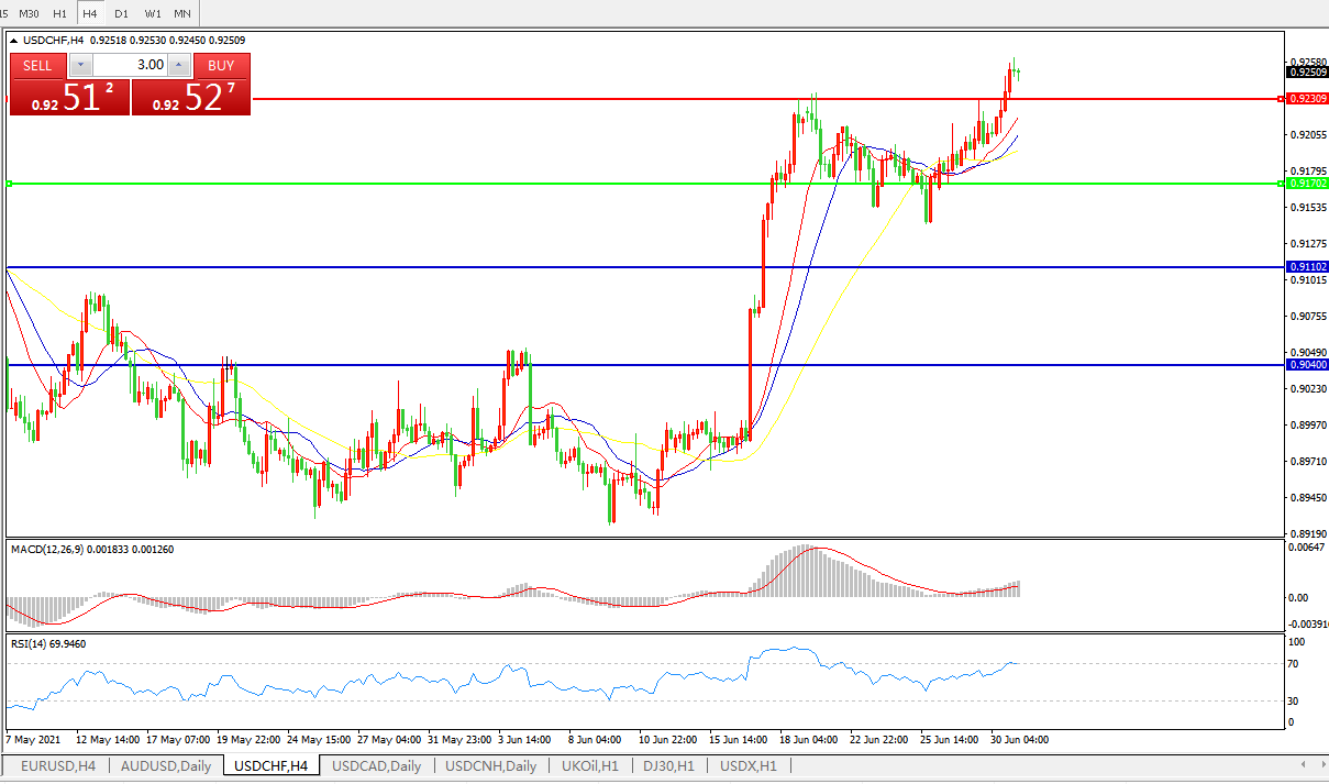6月30日美元刷新4月8日以来高点至92.45,本月累涨2.8%,创下2016年11月以来最大月度涨幅,这得益于美联储利率前景意外转趋鹰派,以及对Delta冠状病毒变种扩散的担忧