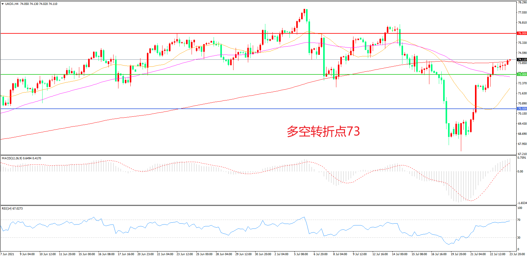 交易策略:在73.00之上看涨,目标76.00               79.00