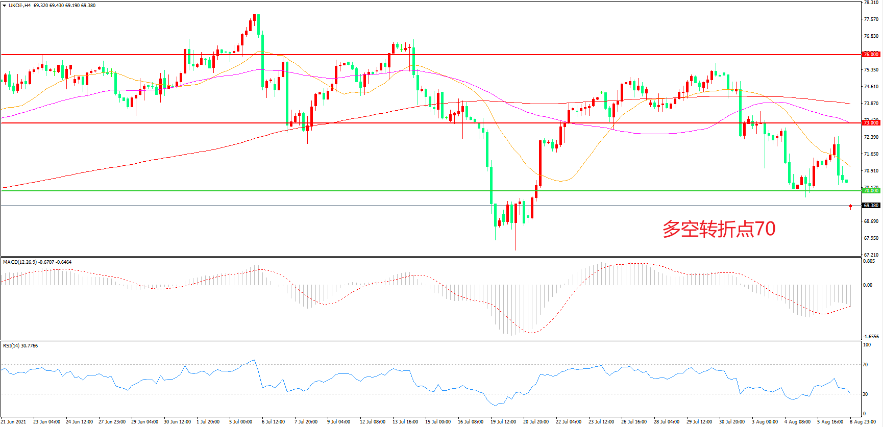 交易策略: 在70.00之下看跌,目标66.50               62.00