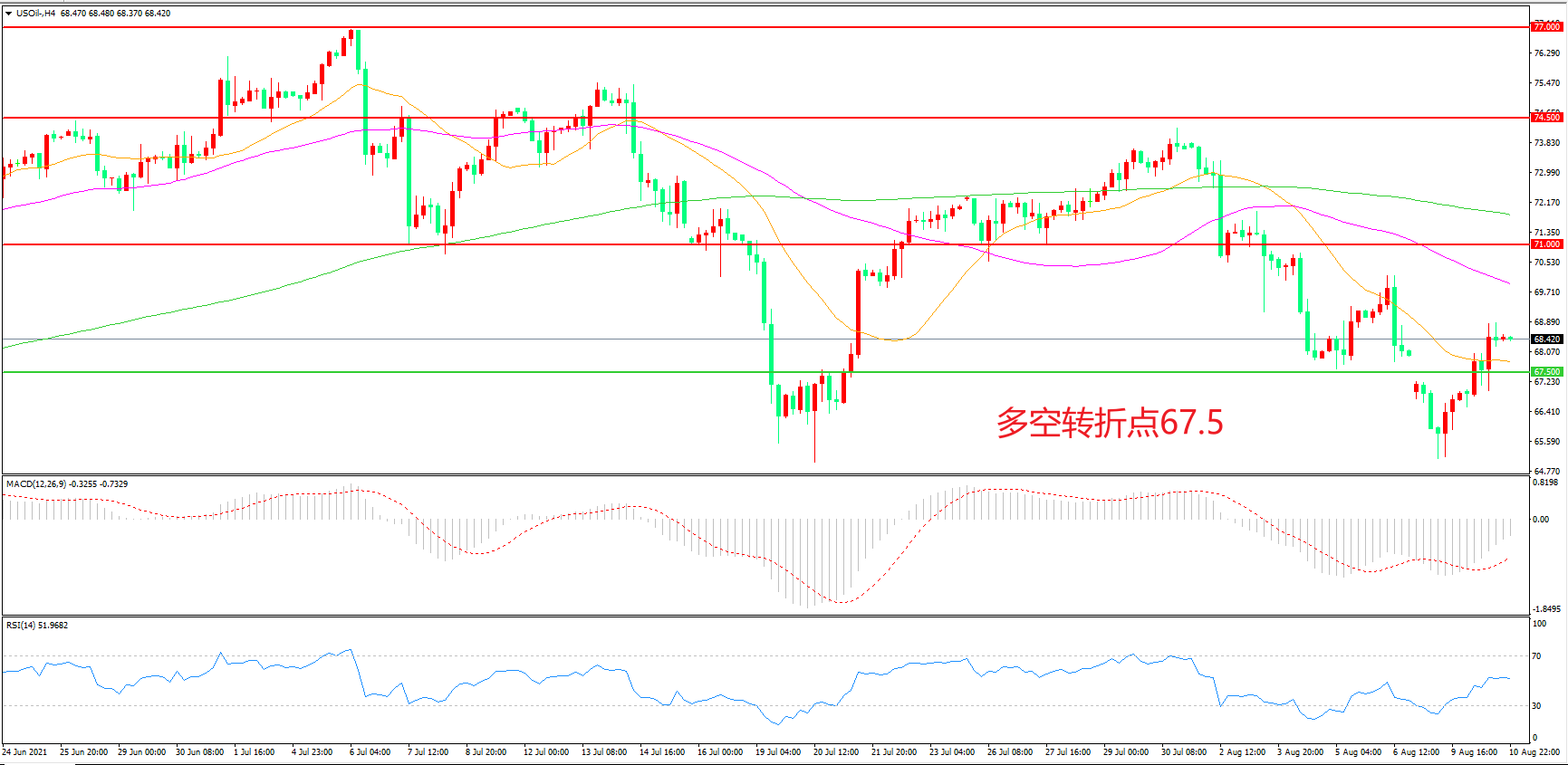 周二(8月10日),经历了连续两个交易日下挫的油市迎来抄底资金,美国WTI原油震荡上行,收报68.39美元/桶。美国参议院通过5500亿美元基建法案,市场情绪明显好转,这在宏观层面上对于油价产生了一定的支持。周三凌晨公布的API原油库存减少81.6万桶,与市场预期基本相符,油价能否继续延续这种强势的势头,晚间的EIA数据就显得尤为重要。