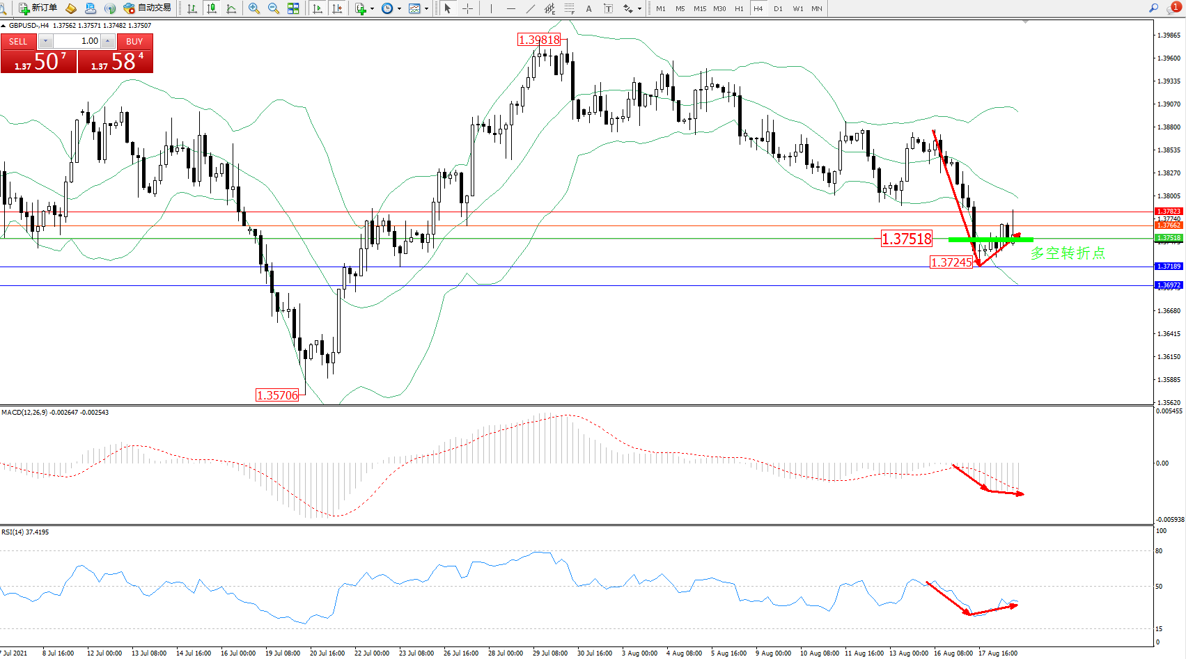 备选策略:1.37518上方看涨,目标1.37662、1.37823