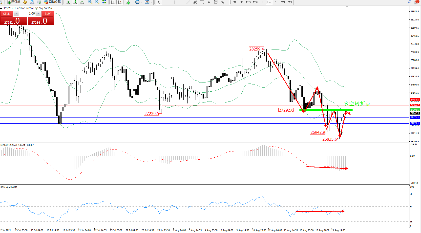 日经225指数8月20日(周五)收盘下跌272.67点,跌幅1.00%,报27008.50点。日本财务大臣麻生太郎:政府将在最新紧急状态下继续提供援助。GDP数据表明经济处于温和复苏,现在评论刺激预算还为时过早。据日本共同社:日本教育大臣表示,没有全面关闭学校的计划。日本方面报告累计已接种1.157亿剂新冠疫苗;已有39.7%的人完全接种新冠疫苗。日本内阁批准了9.27亿日元的新冠病毒紧急预算,以帮助自卫队实施医疗措施。