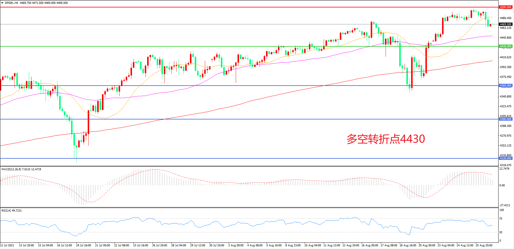 周四(8月26日),在美联储主席鲍威尔杰克逊霍尔重磅讲话前日,美联储几大鹰派官员发表讲话,核心要点就是坚定的缩减QE,市场风险情绪受到影响,标普500震荡下行,收报4470.75点。本次全球央行年会将于今日起正式拉开帷幕,鲍威尔在会上的发言每一句话都将被反复琢磨,进而引发市场的惊涛骇浪。