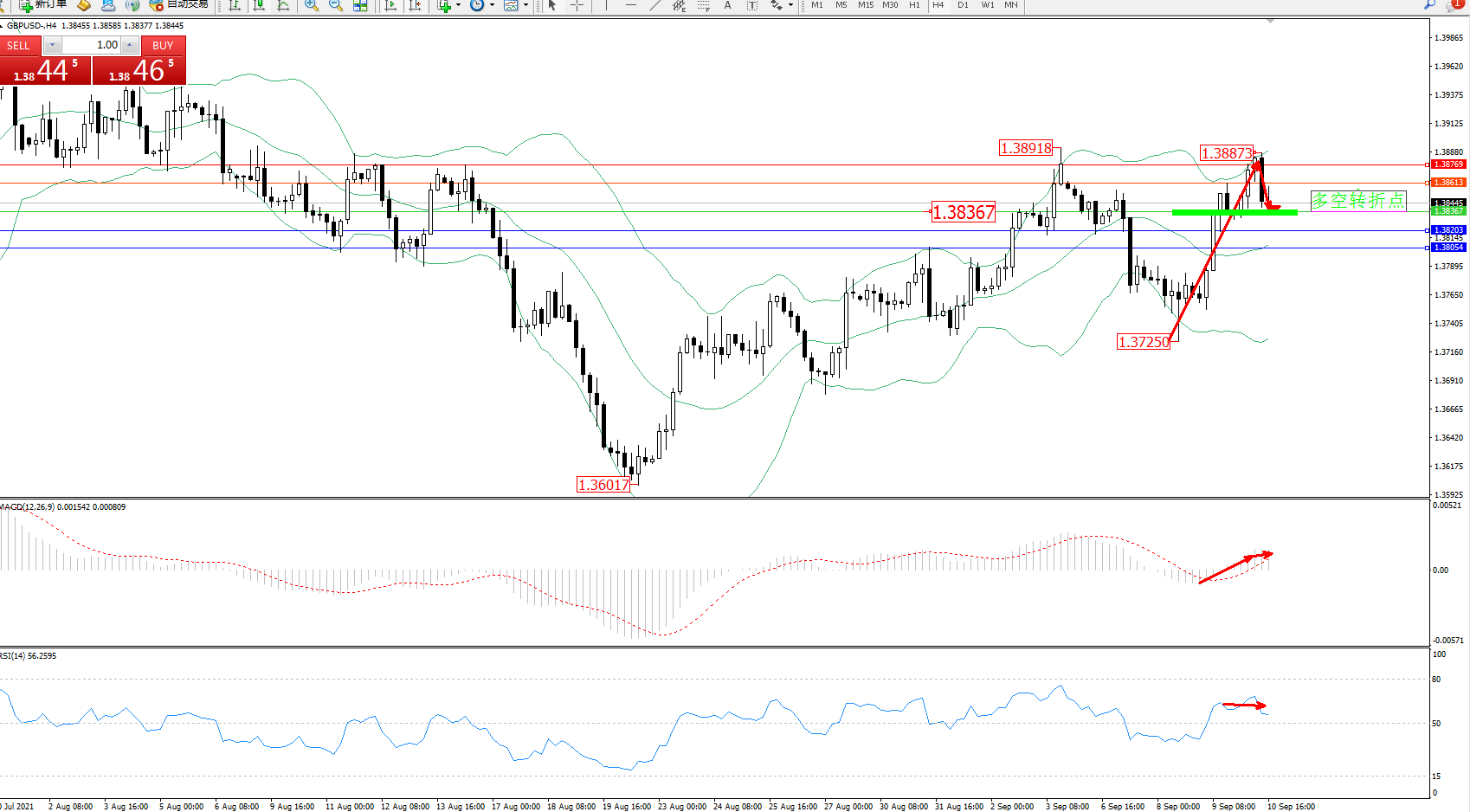 交易策略:1.38367上方看涨,目标1.38613、1.38769