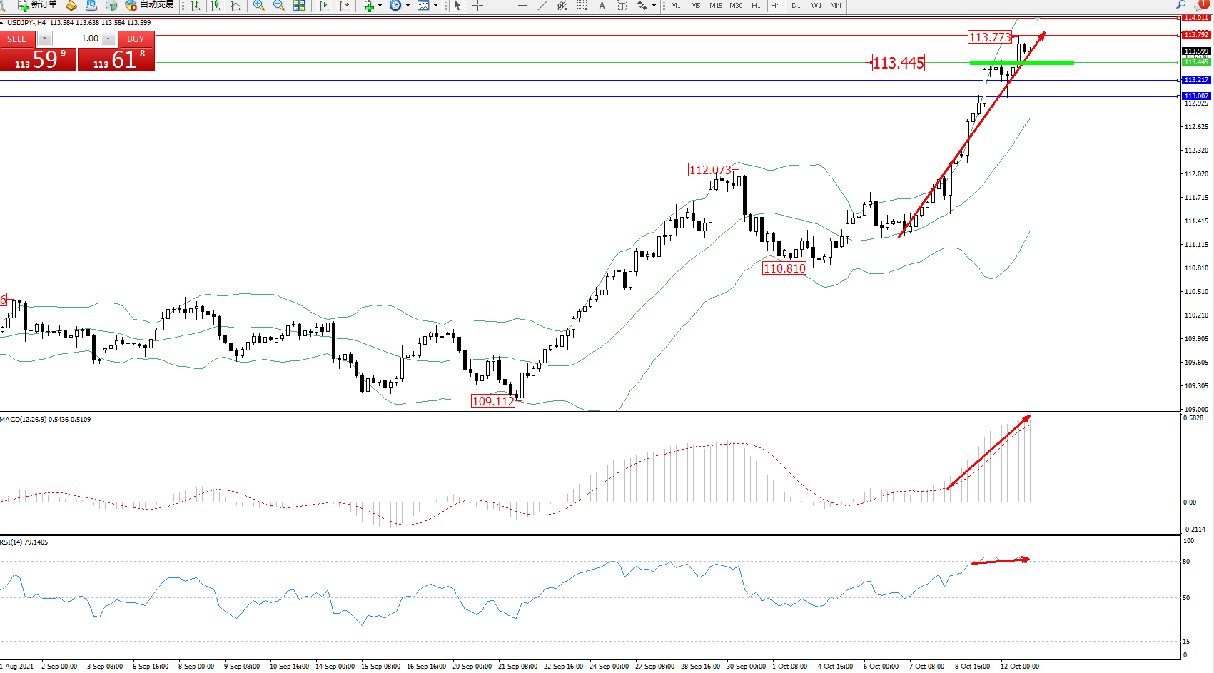 美元兑日圆维持高位113.591附近震荡,全球大宗商品价格上涨和日圆走软推高了进口成本,给企业利润率带来压力,并加大了消费者物价意外上涨的风险,日本9月批发通胀触及13年高位;不断上升的投入成本正在给已经受到供应紧张打击的制造商增加压力,并给日本的经济前景蒙上阴影,其依赖出口来缓冲消费疲软带来的冲击。如果原材料成本加速上涨,销售最终产品的企业利润将受到挤压。由于日本是燃料净进口国,这种成本推动型通胀可能损害经济;日元疲软可能会挤压企业的底线,从而损害利润增长。