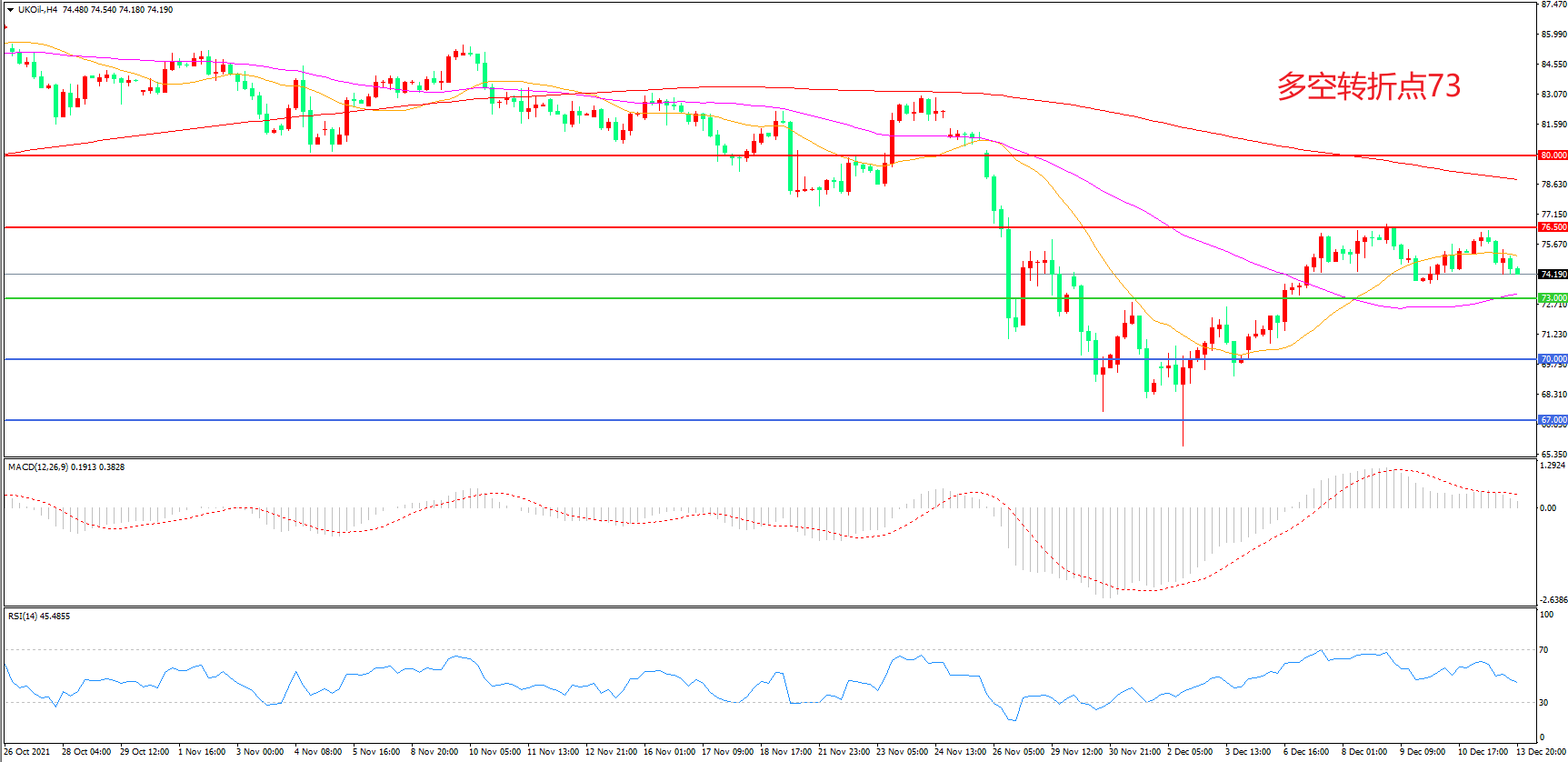 交易策略:在73.00之上看涨,目标76.50              80.00